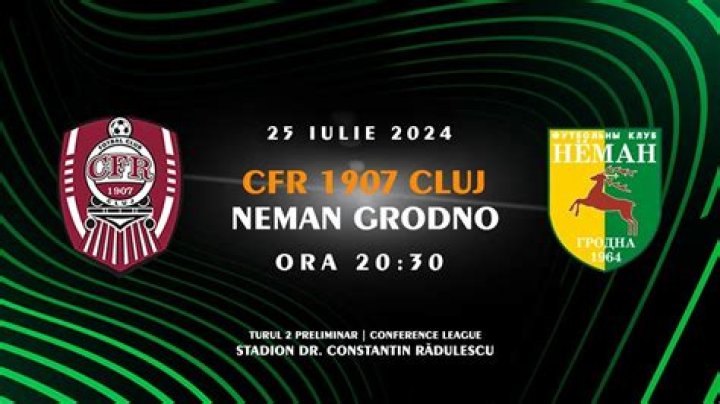 CFR Cluj vs Neman Grodno în direct live Biletul zilei cota 2 - 25.07.2024 25 iulie 2024 Uită la TV
